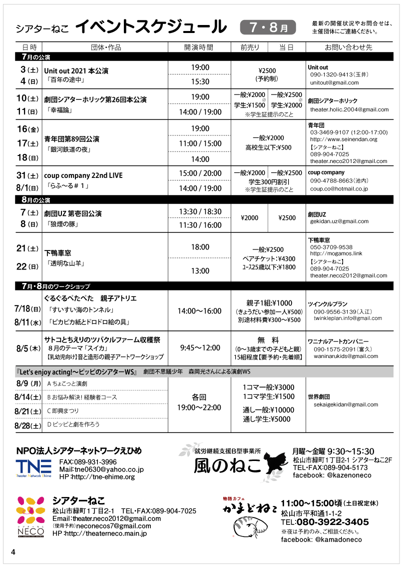 - イベントスケジュール 7・8月